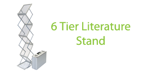 This contemporary 6-Tier Literature Stand will keep your brochures and information sheets organized and easily accessible at your next trade show, exhibition, special event or in-store display. Each tier will hold your 8.5" X 11" brochures, information sheets and other documentation so you can be certain they walk away with all the information they need.