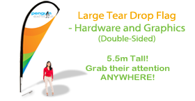 The Large Tear Drop Flag is 5.5 meters in height and can be purchased separately as hardware (pe-lgtdf) or with single-sided graphics (see product pe-lgtdfg) or double-sided graphics (see product pe-lgtdfg2).
