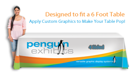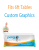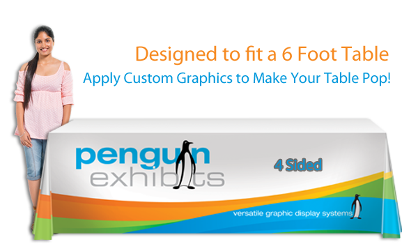 Maximize visual impact at your trade show booth, exhibition or in-store display table with a table throw. Sized to fit a standard 6ft table the 4-Sided throw provides full length front, back and side coverage allowing for neat and tidy, hidden storage of items underneath. Table throws are constructed of printed dyesublimation fabric.