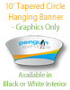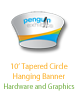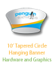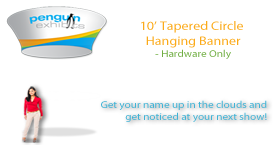 Get your name up in the clouds with the 10ft Tapered Circle Cloud Cover (height 42"). This hanging banner will get you noticed from practically anywhere in the exhibit hall. Each cloud cover is constructed of a high quality frame and fabric graphics. This product is constructed with an aluminum frame, bungee cord and push clip connectors with tensioned fabric dyesublimation graphics.
