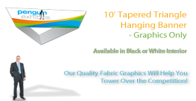 This product is graphics for the 10ft Tapered Triangle Cloud Cover Hanging Sign with white interior (product cc-ttgw). This product is premium tensioned fabric dyesublimation graphics.