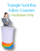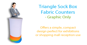 This product is graphics for the Triangle Sock Box Fabric Counter (product sb-trih). This product is constructed with an aluminum frame, wooden tops and bases and tensioned fabric dyesublimation graphics.