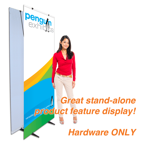 Our Standard Full Graphic Twin (Double-sided) Penguin 100 is perfect for trade shows, exhibitions, store openings, specials or any event that needs a bold statement. The Standard Full Graphic Twin Penguin is 86.25” high and is available in 4 widths from 23.6" to 39.4". Each unit includes a convenient, compact transport case.