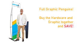 Our Standard Full Graphic Penguin is perfect for trade shows, exhibitions, store openings, specials or any event that needs a bold statement. The Standard Full Graphic Penguin is 86.25” high and is available in 4 widths from 23.6" to 39.4". Each unit includes a convenient, compact transport case. This product includes both hardware and graphics resulting in a 10% discount.