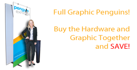 Our Standard Full Graphic Twin Penguin is perfect for trade shows, exhibitions, store openings, specials or any event that needs a bold statement. The Standard Full Graphic Twin Penguin is 86.25” high and is available in 4 widths from 23.6" to 39.4". Each unit includes a convenient, compact transport case. This product includes both hardware and graphics resulting in a 10% discount.