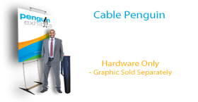 Our Standard Graphic Cable Penguin is perfect for trade shows, exhibitions, store openings, specials or any event that needs a bold statement. The Standard Graphic Cable Penguin is 86.25” high and is available in 4 widths from 27.5" to 39.4". Each unit includes a convenient, compact transport case.