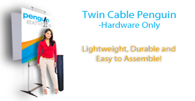 Our Standard Twin Cable Penguin is perfect for trade shows, exhibitions, store openings, specials or any event that needs a bold statement. The Standard Twin Cable Penguin is 86.25” high and is available in 4 widths from 27.5" to 39.4". Each unit includes a convenient, compact transport case.