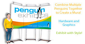Penguin multi-frame murals use edge magnetic tape to create virtually seamless displays that make a bold statement! Our mural kits include everything you need for your next trade show, exhibit or special event. The pe-8mktc 8' Cable Mural Kit includes: 3 Cable Penguin 80's, graphics 31.5" by 50" and magnetic connectors.