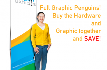 Our Standard Full Graphic Penguin is perfect for trade shows, exhibitions, store openings, specials or any event that needs a bold statement. The Standard Full Graphic Penguin is 86.25” high and is available in 4 widths from 23.6" to 39.4". Each unit includes a convenient, compact transport case. This product includes both hardware and graphics resulting in a 10% discount.